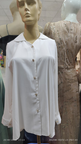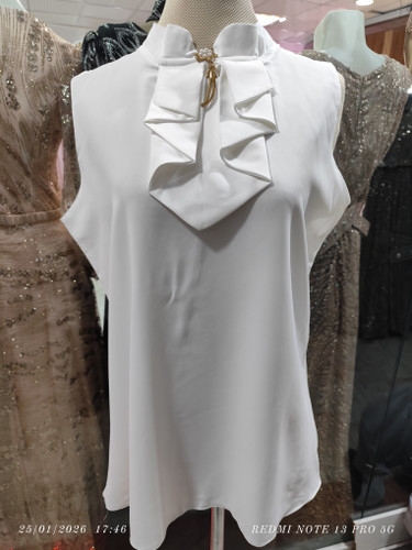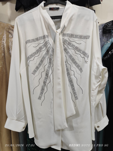 ناموجودشومیز مجلسی یقه کراواتی نگین کوب رنگ سفید