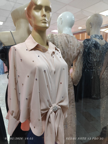 ناموجودشومیز مجلسی دوتیکه نگین کوب وگل برجسته