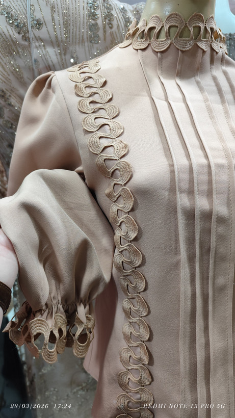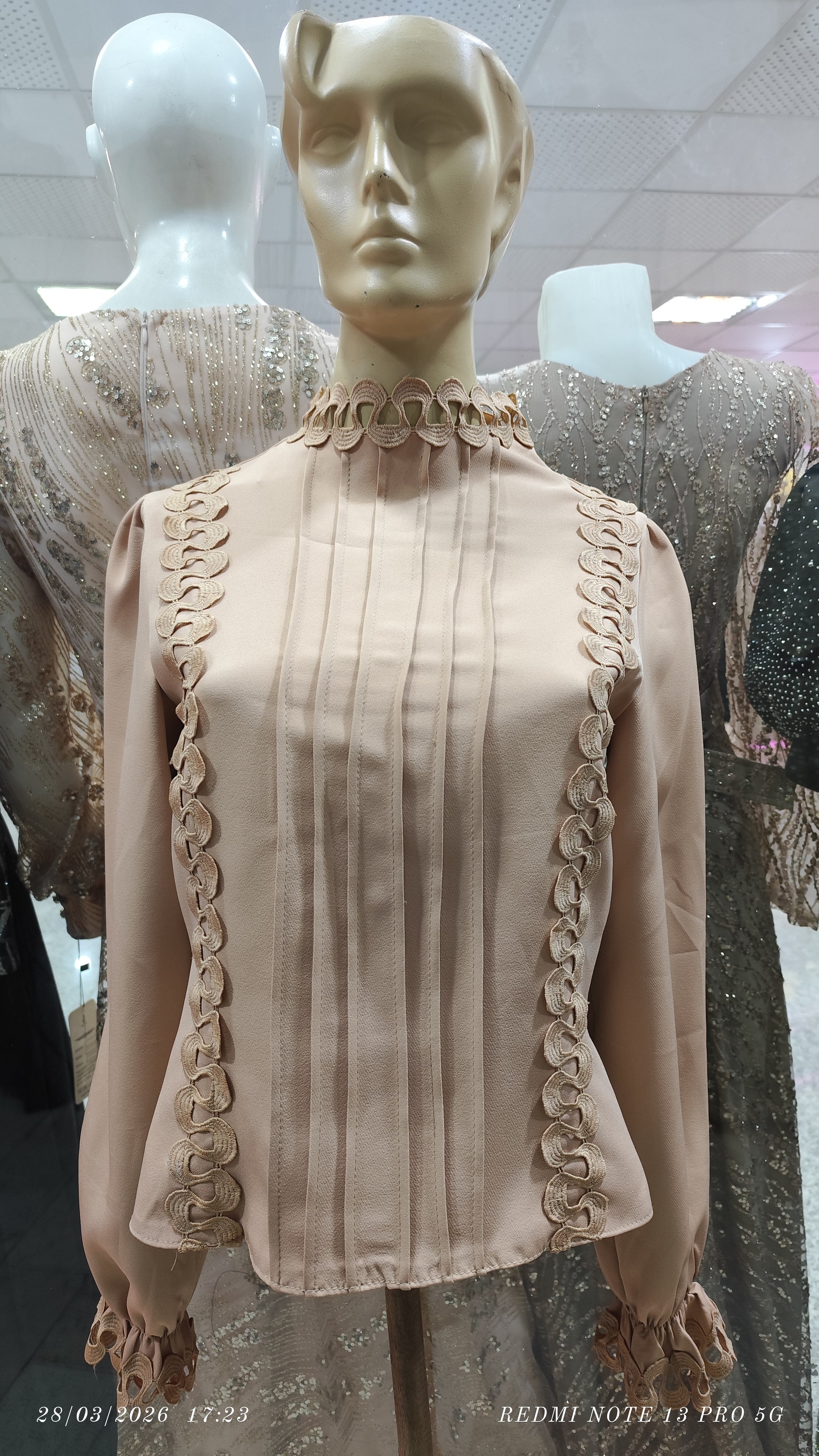 این شومیز زیبا با نوار دانتلی که زیبایی بی نظیری به شومیز داده مچ آستین هم نوار کار شده و پشت شومیز زیپ دار