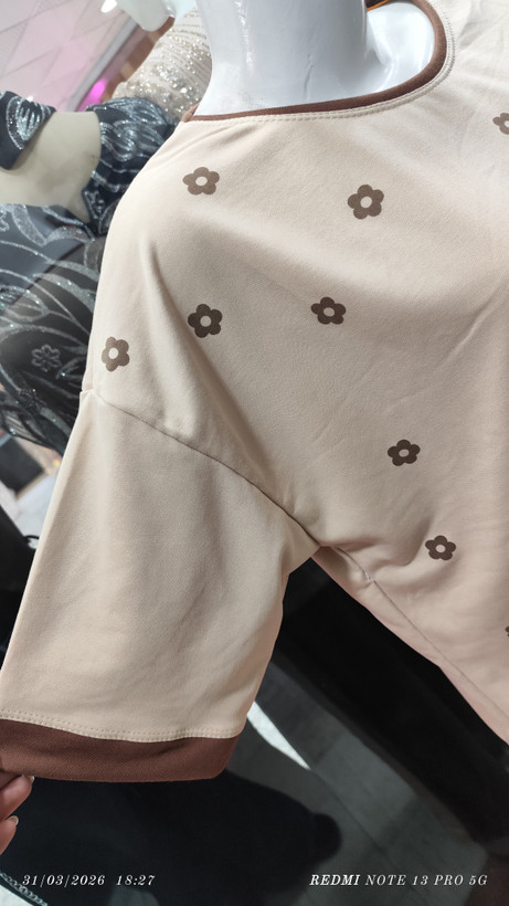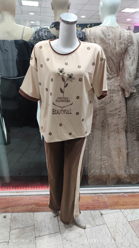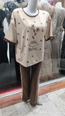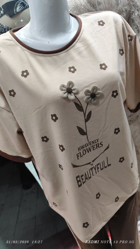 ست تیشرت لانگ طرح گل برجسته شلوار بگ نخ پنبه