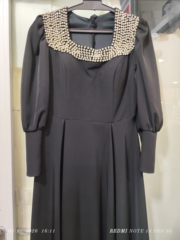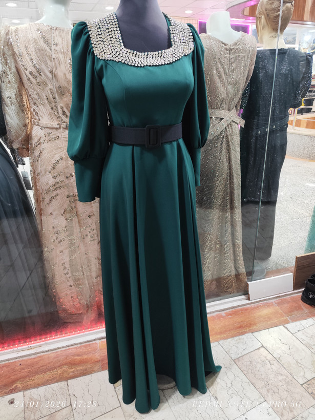 پیراهن ماکسی مجلسی زنانه در رنگ مشکی و سبز