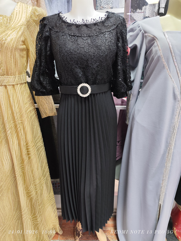 بالا تنه دانتل پایین تنه پلیسه مازراتی میباشد دارای کمربند نگین دار
