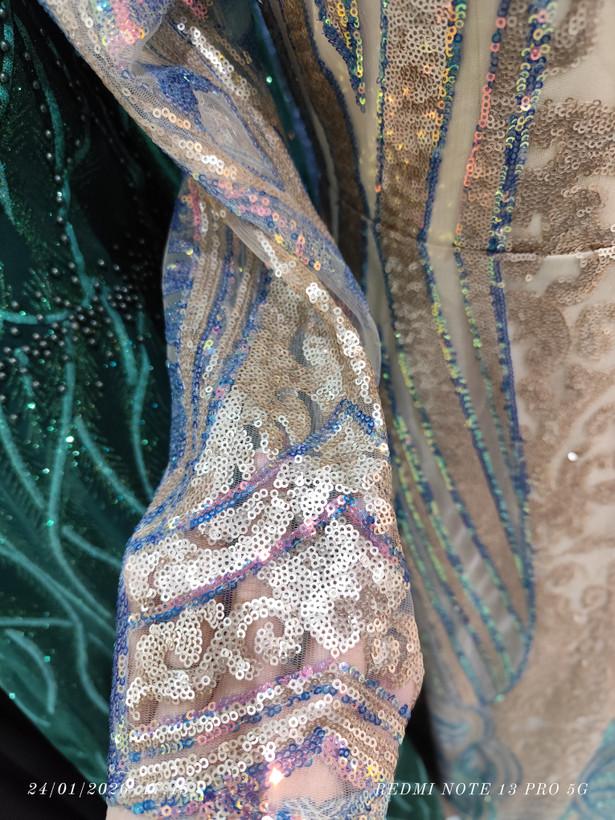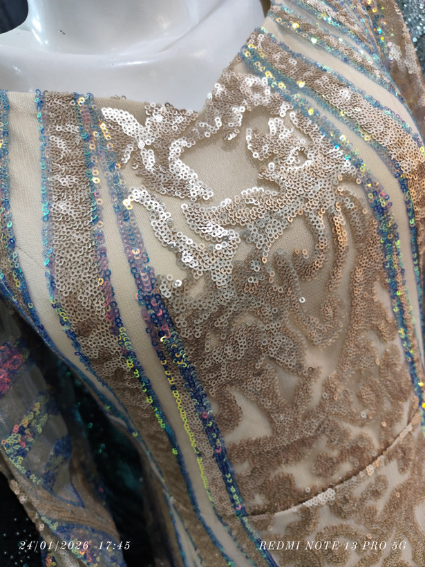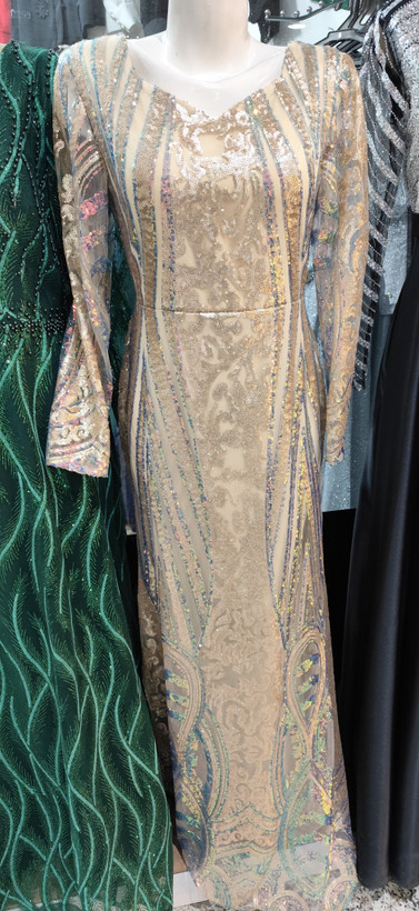 پیراهن ماکسی تمام پولکی دست دوز آستردار