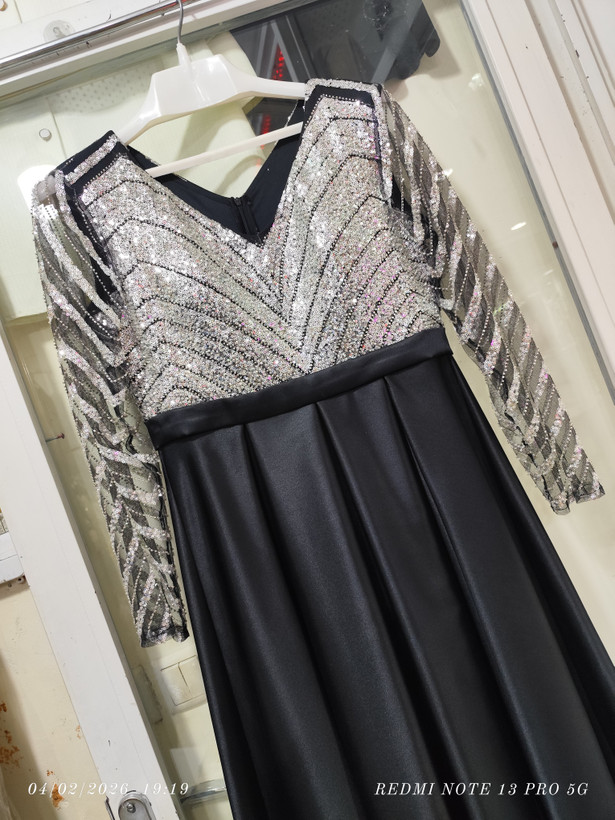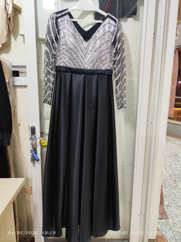 پیراهن مجلسی ماکسی تنه کار پولک و ملیله دست دوز میباشد