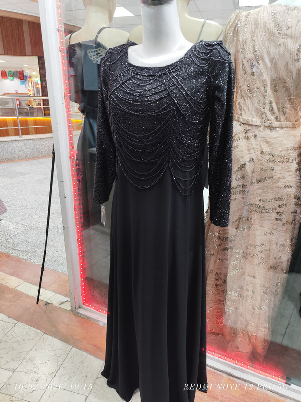 پیراهن ماکسی بلند ملیله دوزی مشکی
