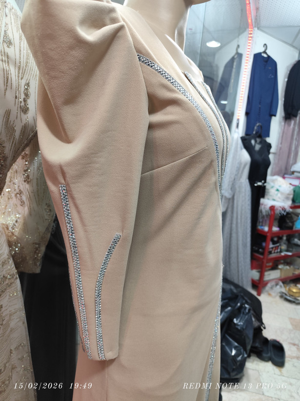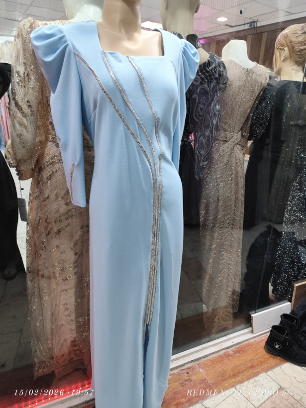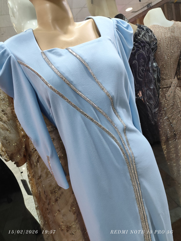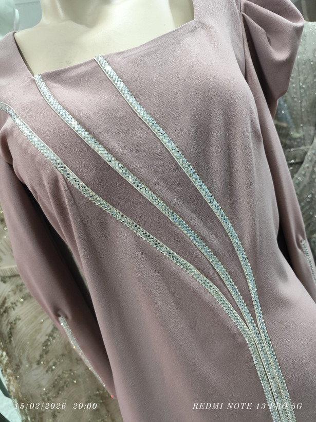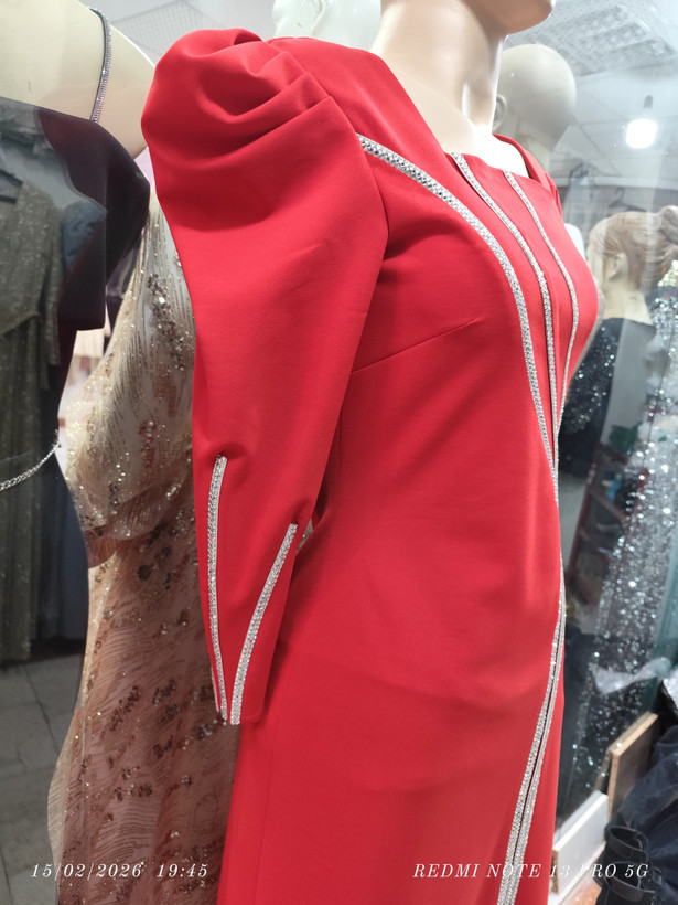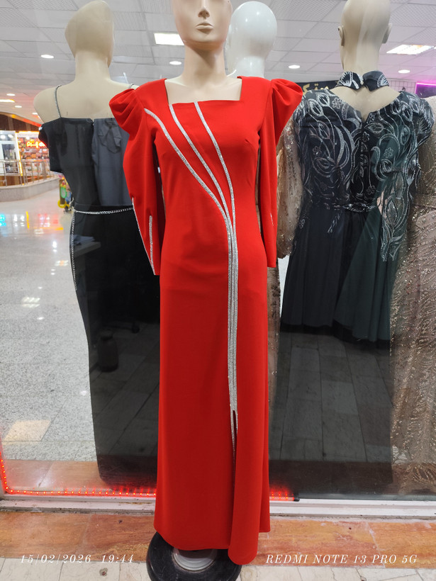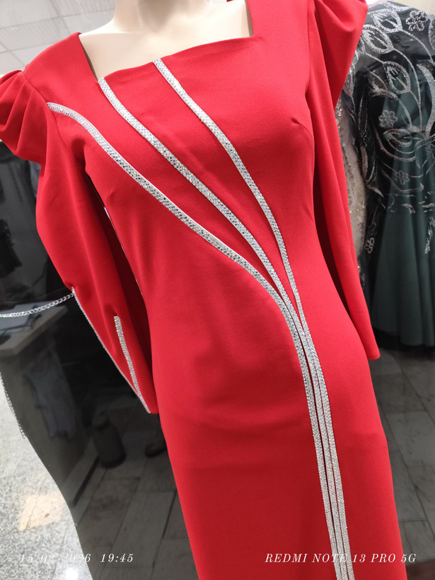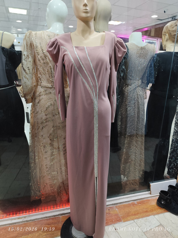پیراهن تن خوری عالی روی پارچه نگین کار شده دامن چاک داره
