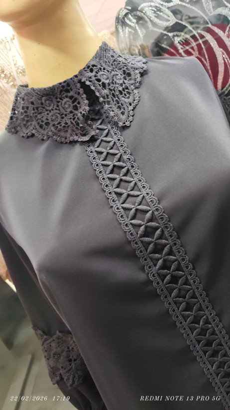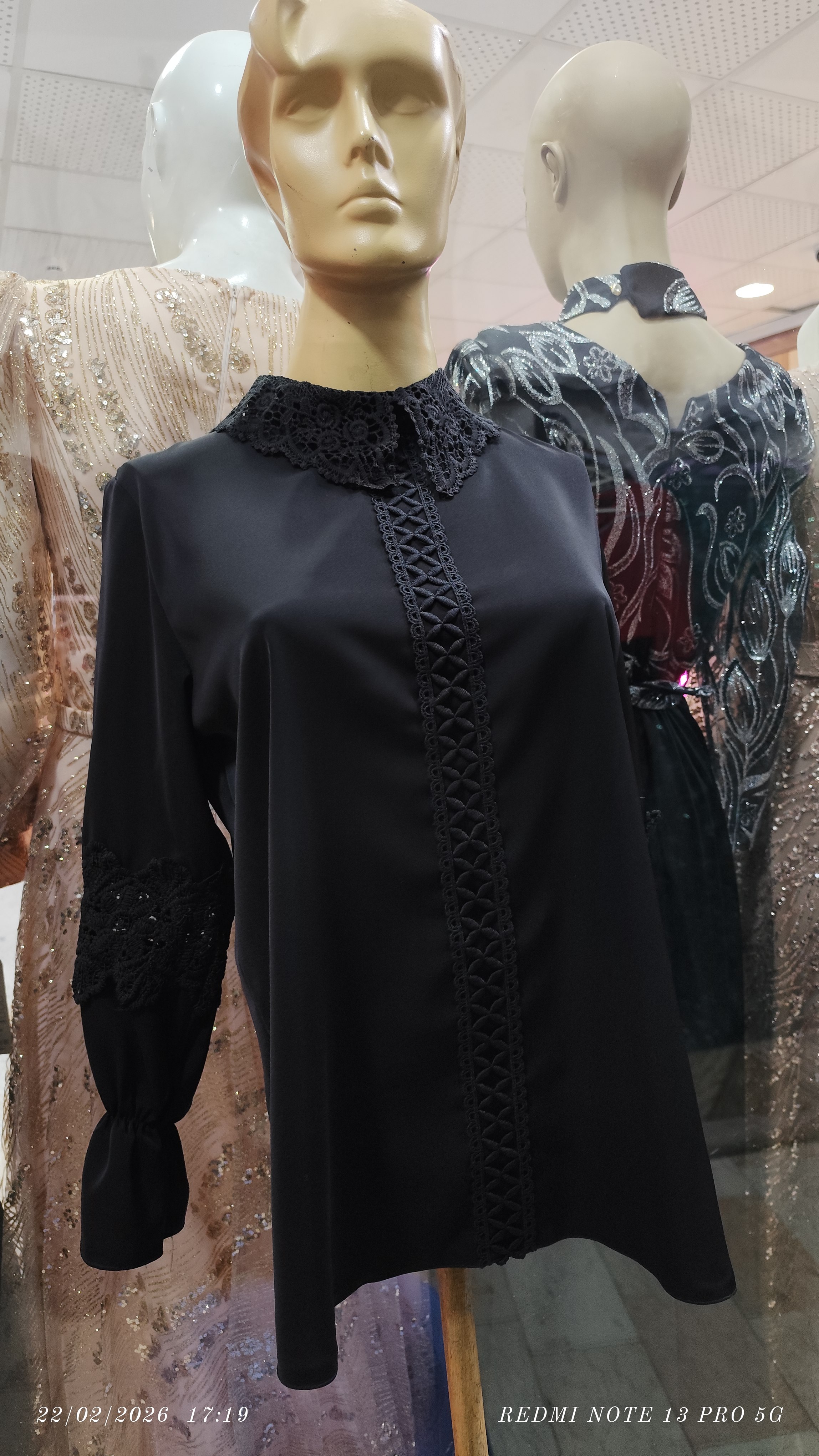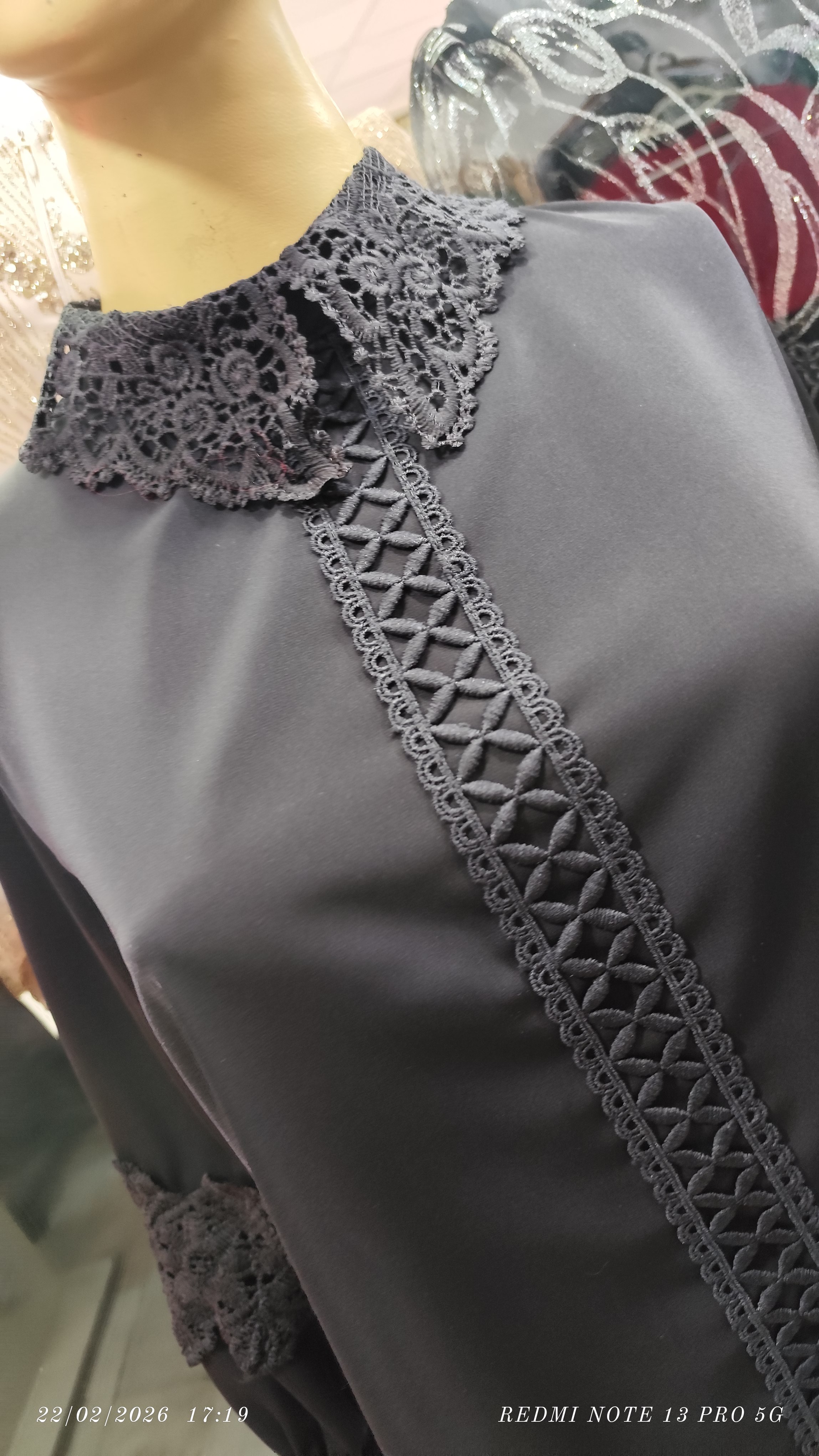 شومیز آستین گیپور کار شده یقه گیپور کار شده